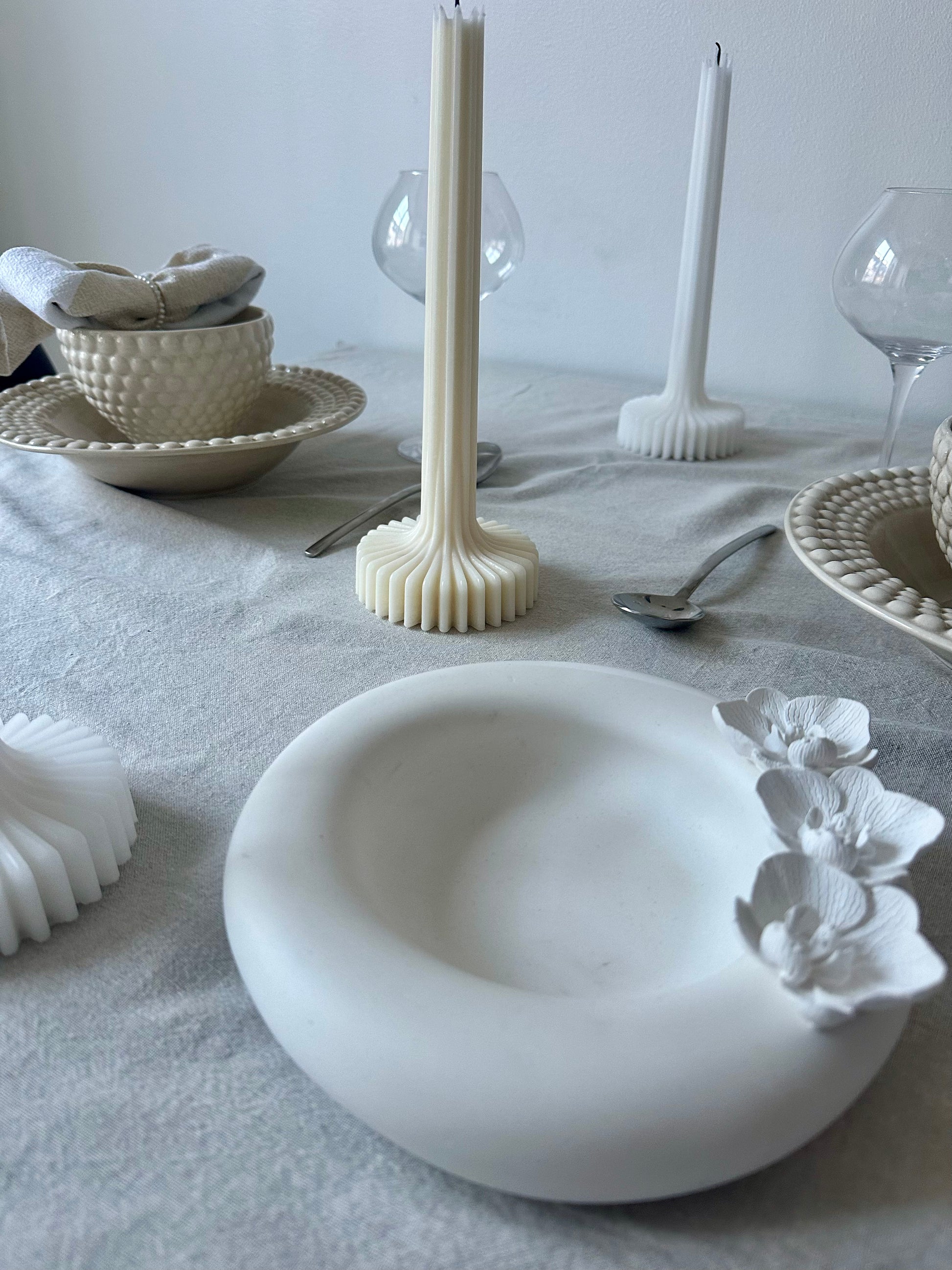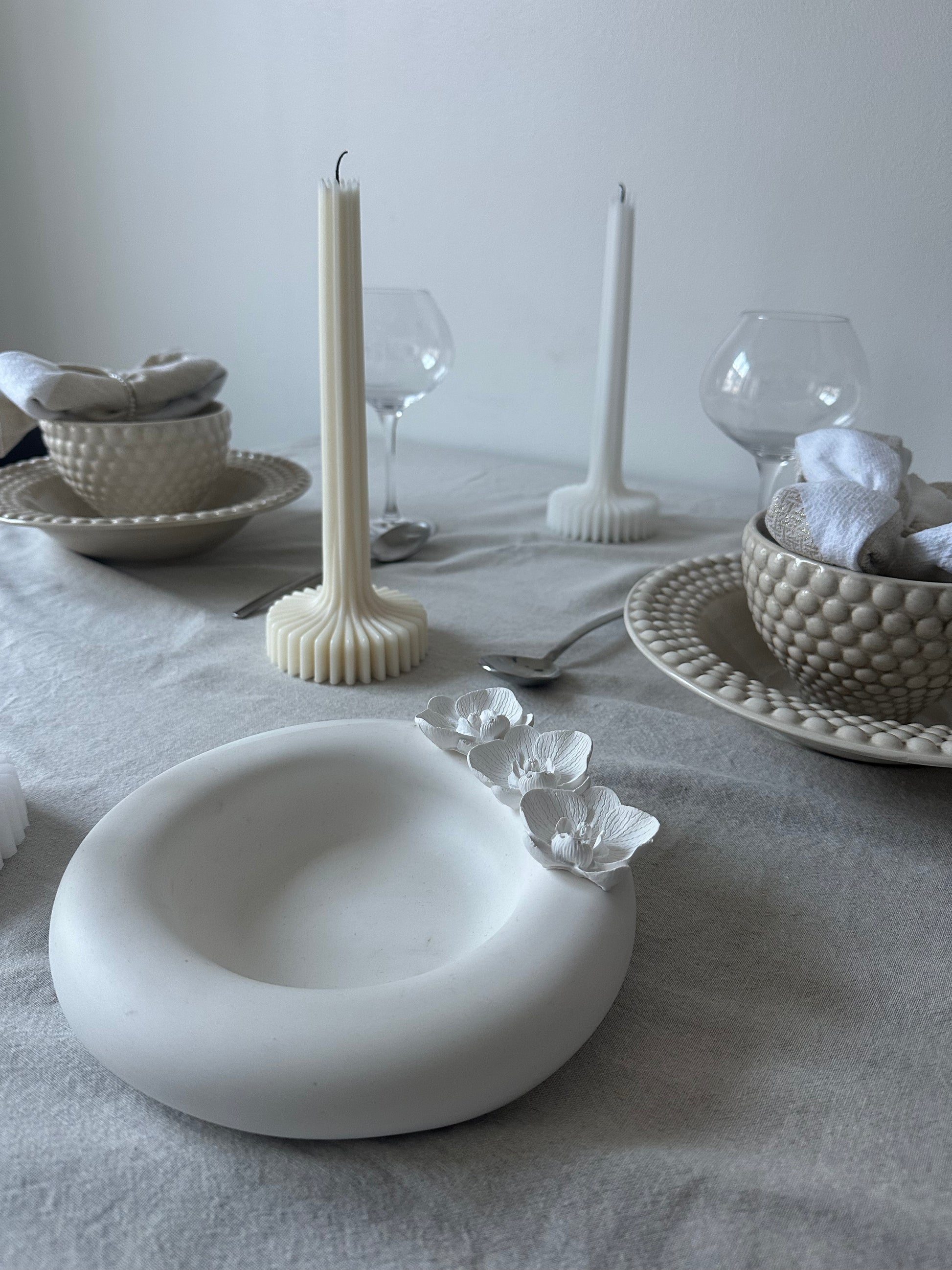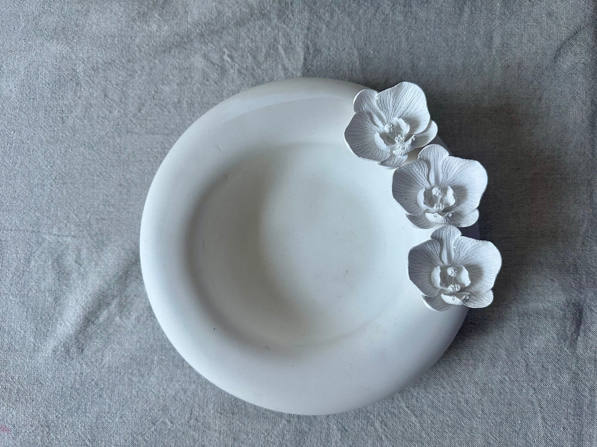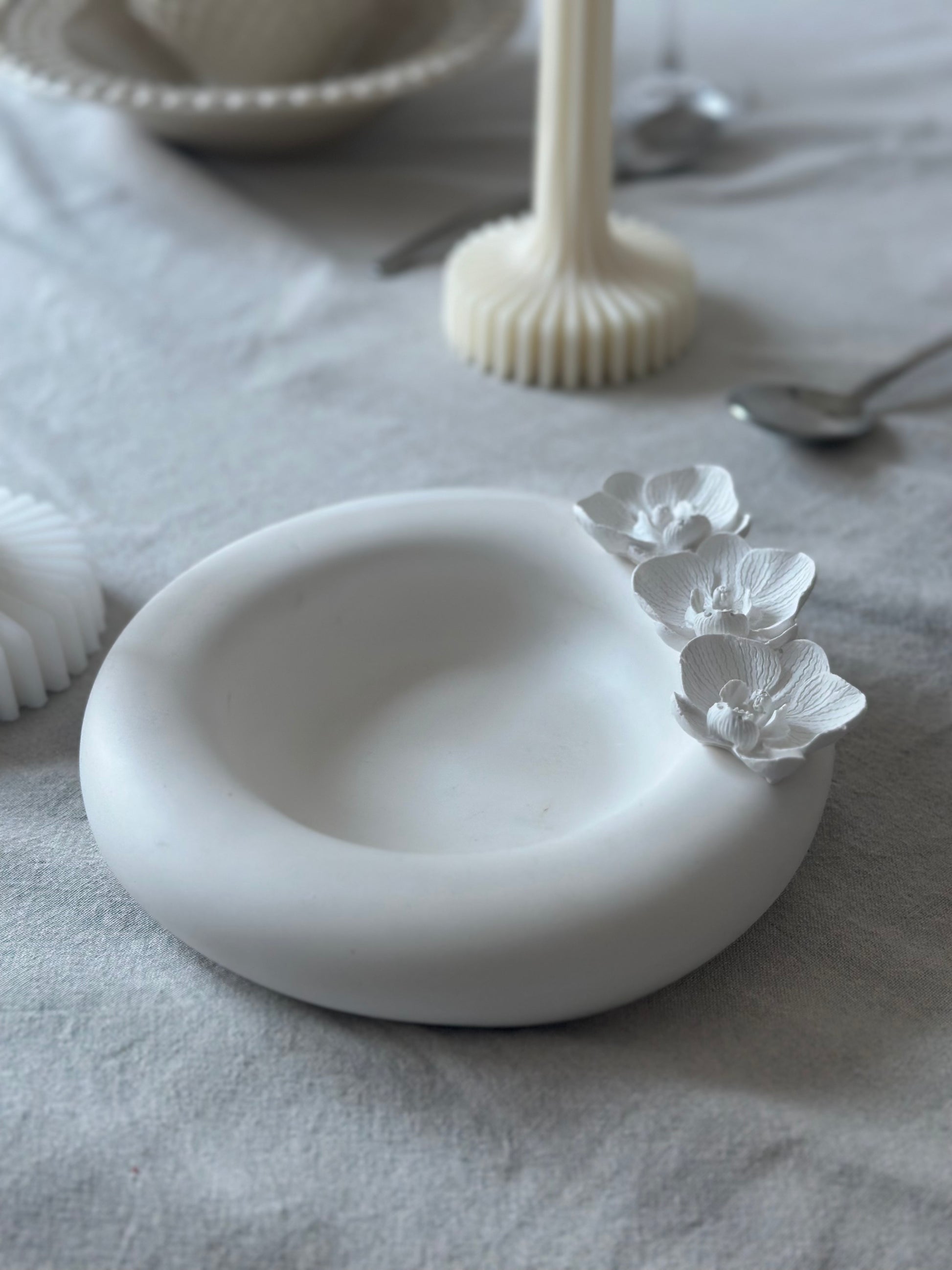 Handgjort orkidé fat lackat med vattentåligt och giftfritt lack. Ytter diameter ca 21cm och inner diameter 11cm. Väger ca 1,2kg.
