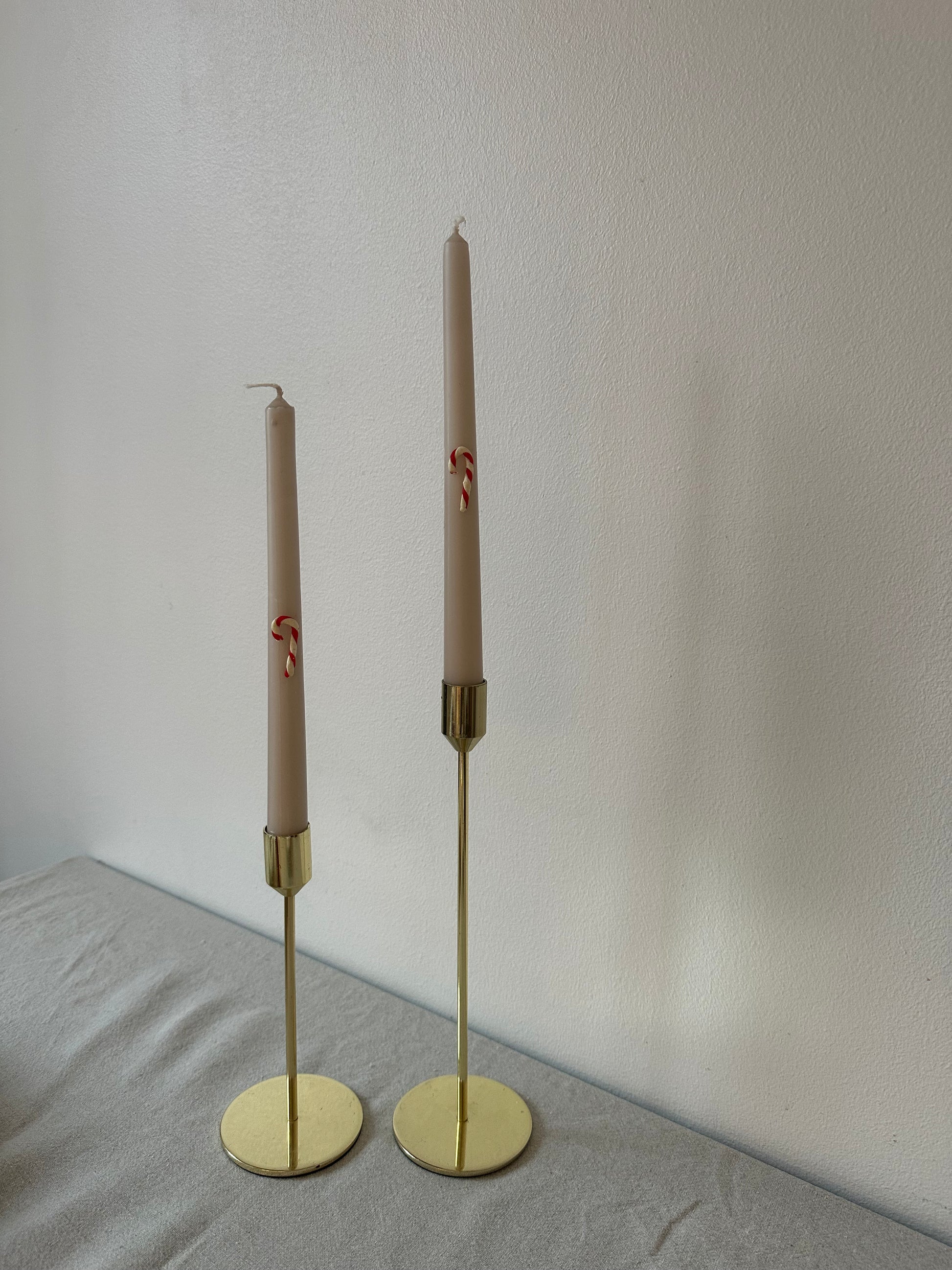 Antikljus i stearin med handgjorda renar och polkagrisar i vax. Säljes om 4st med 2st renar och 2st polkagrisar. 24,5 cm höga. Passar för den som ska dekorera inför en lussefika! Se även vårat set med höga ljus med lussebullar.