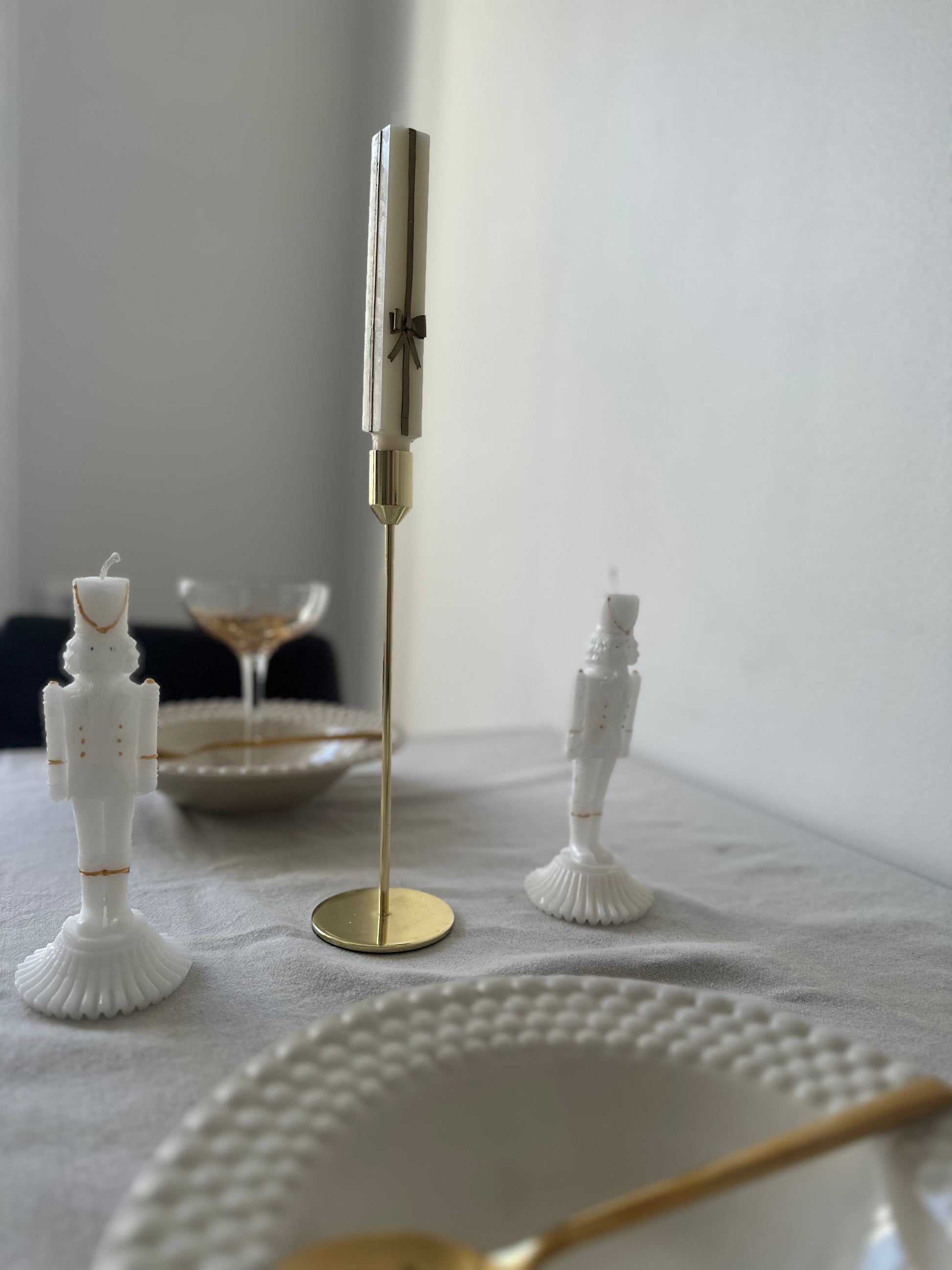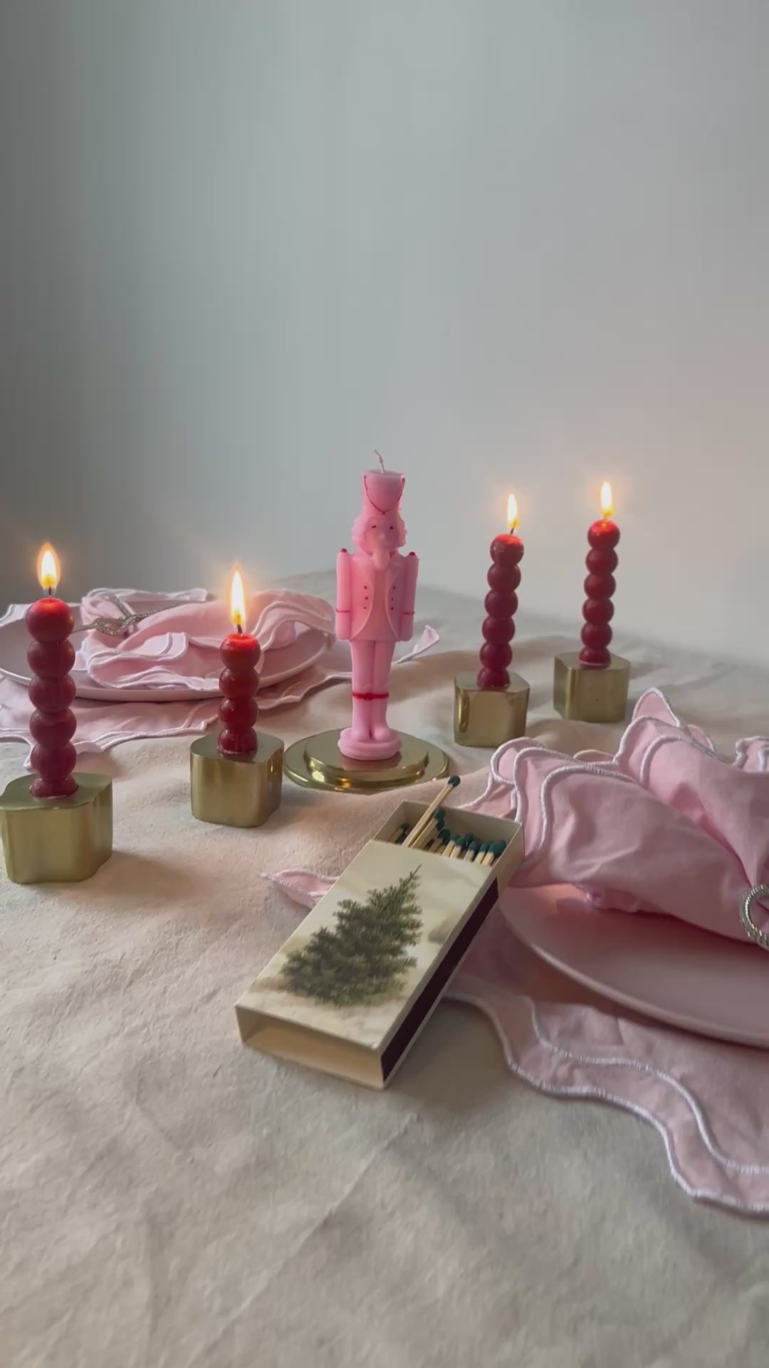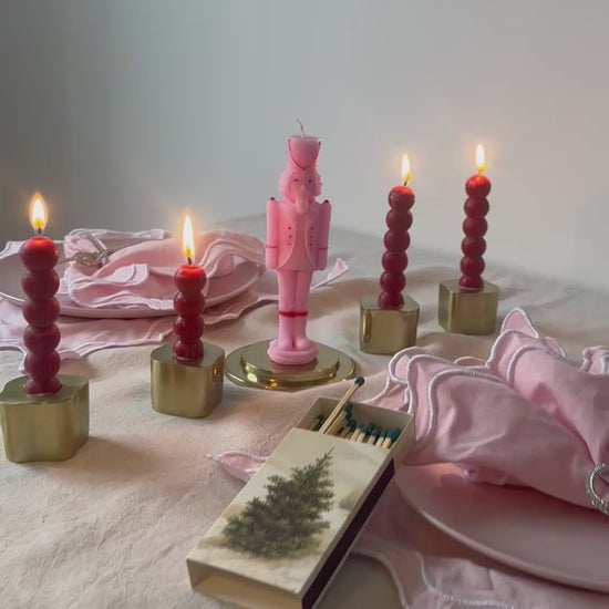 Klassisk nötknäppare handgjord i stearin. Nötknäpparen i rosa står utan piedestal och vill gärna stå stadig på ett underlag gärna med en pigg då han är lite längre ca 18cm hög och 4cm bas i diameter. Nötknäpparen i pärlemor vitt och guld är ca 20 cm hög. Säljes styckesvis. Otroligt vacker med detaljer! Varför inte våga en rosa nötknäppare med röda detaljer i vax?
