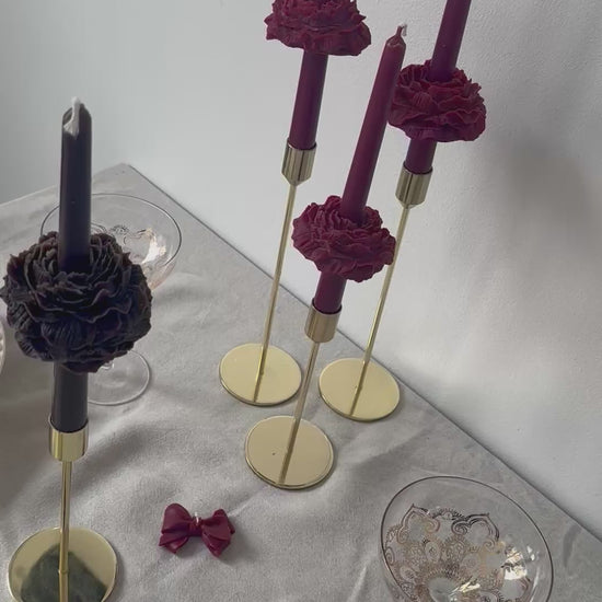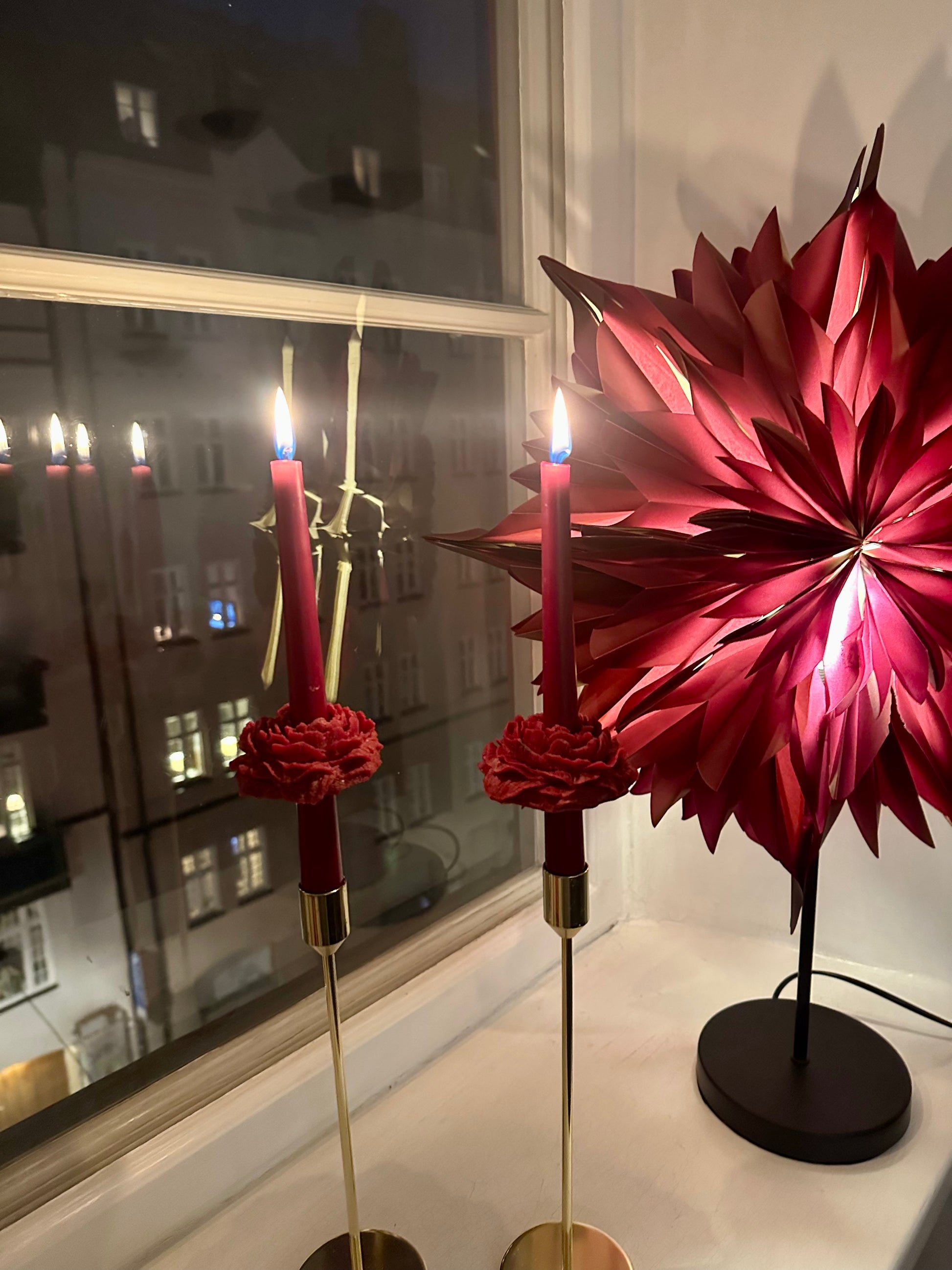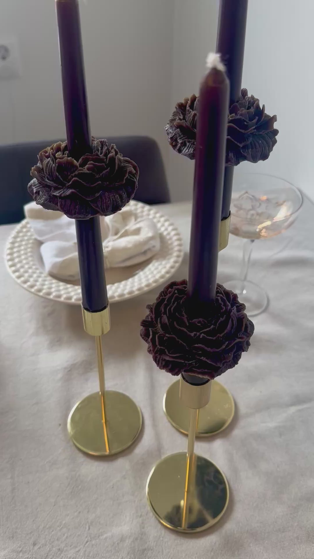 Handgjorda ljus med avtagbara blommor som kan sättas en och en eller dubbla på varandra i en boll. Ljusen är i 100% stearin och ljus manschetten med blomman kan lyftas på ett nytt antik ljus innan den brunnit till ca 2-3cm ovanför där den sitter. Säljes i pack om 2st "halvor" dvs blom kransar med 2st antik ljus. 25 cm höga. En riktig storsäljare hos Tell & Glow.