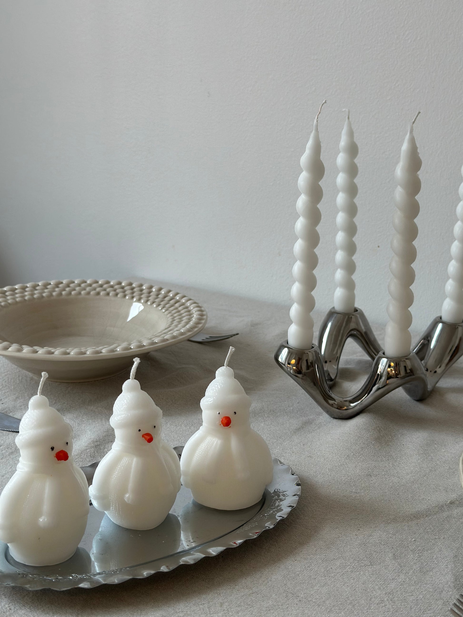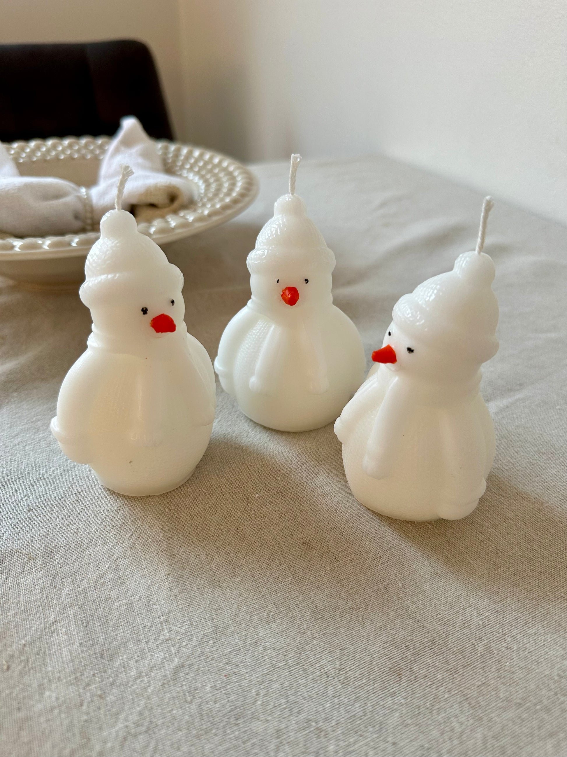Snögubbe ljus handgjord i stearin som smälter saktare än den ni precis gjort ute i snön. Perfekt som present eller att dekorera unikt med hemma. Snögubben är ca 10 cm hög och 7,5cm bred på sin bredaste punkt. Säljes styckevis.