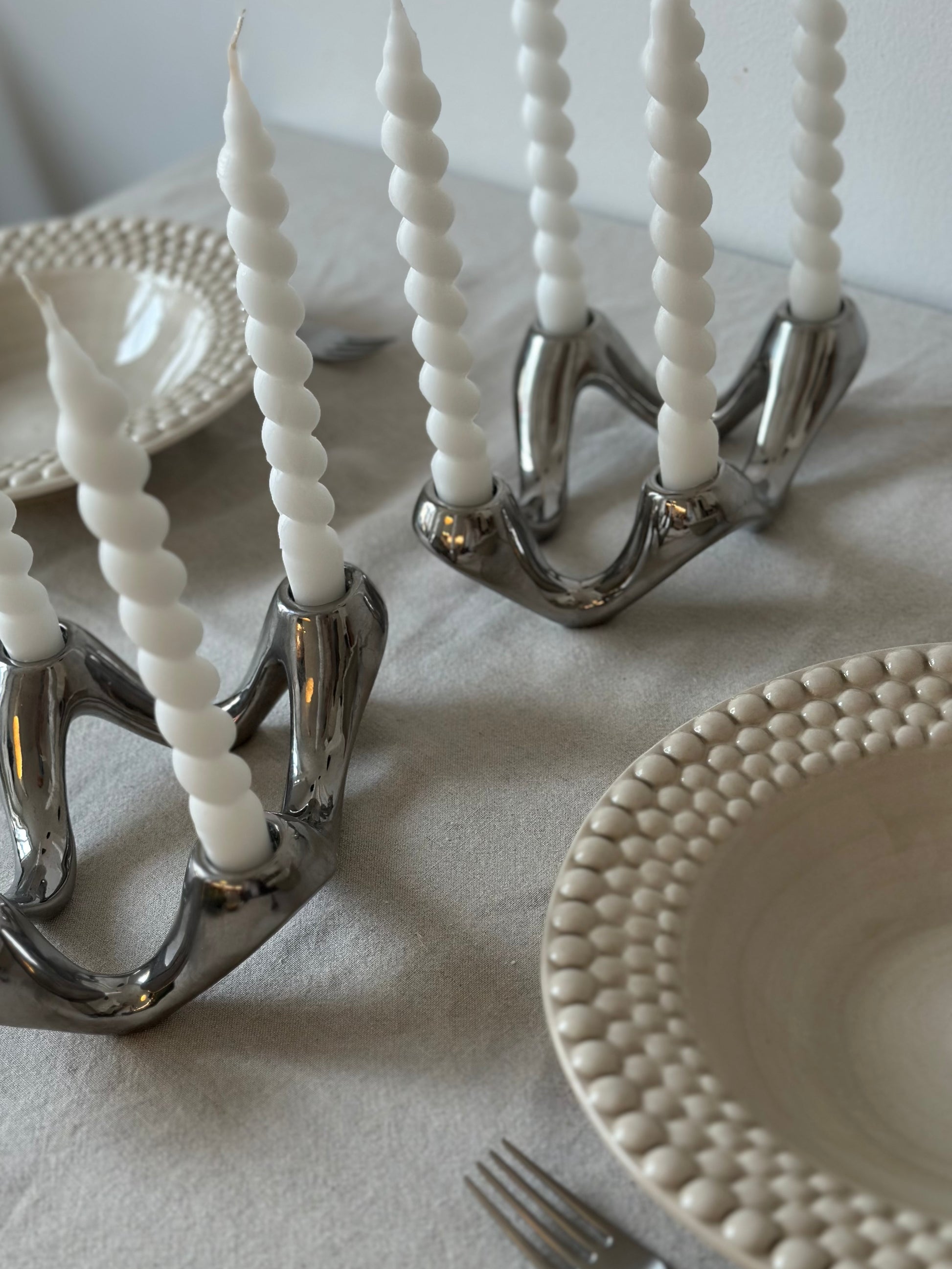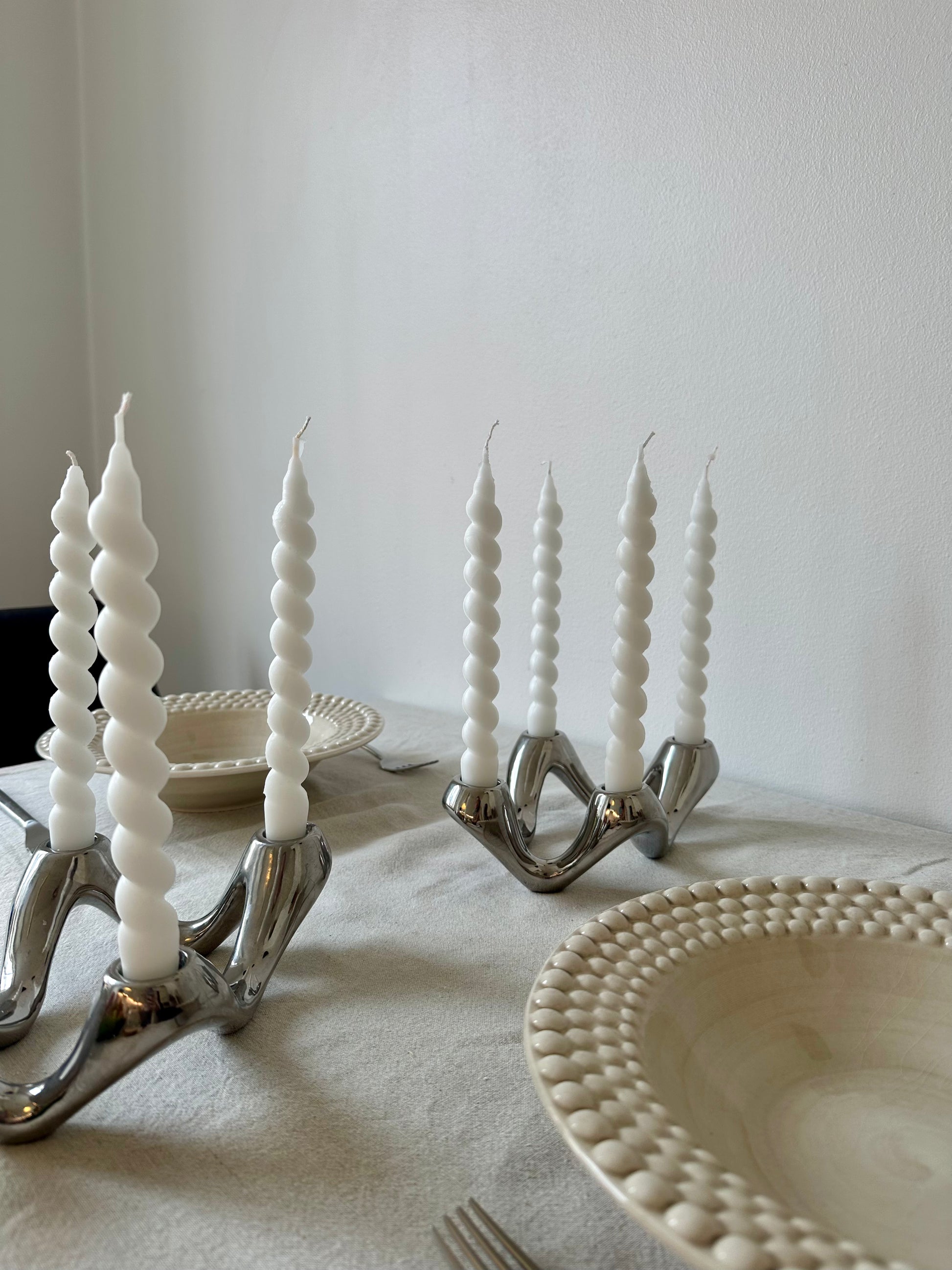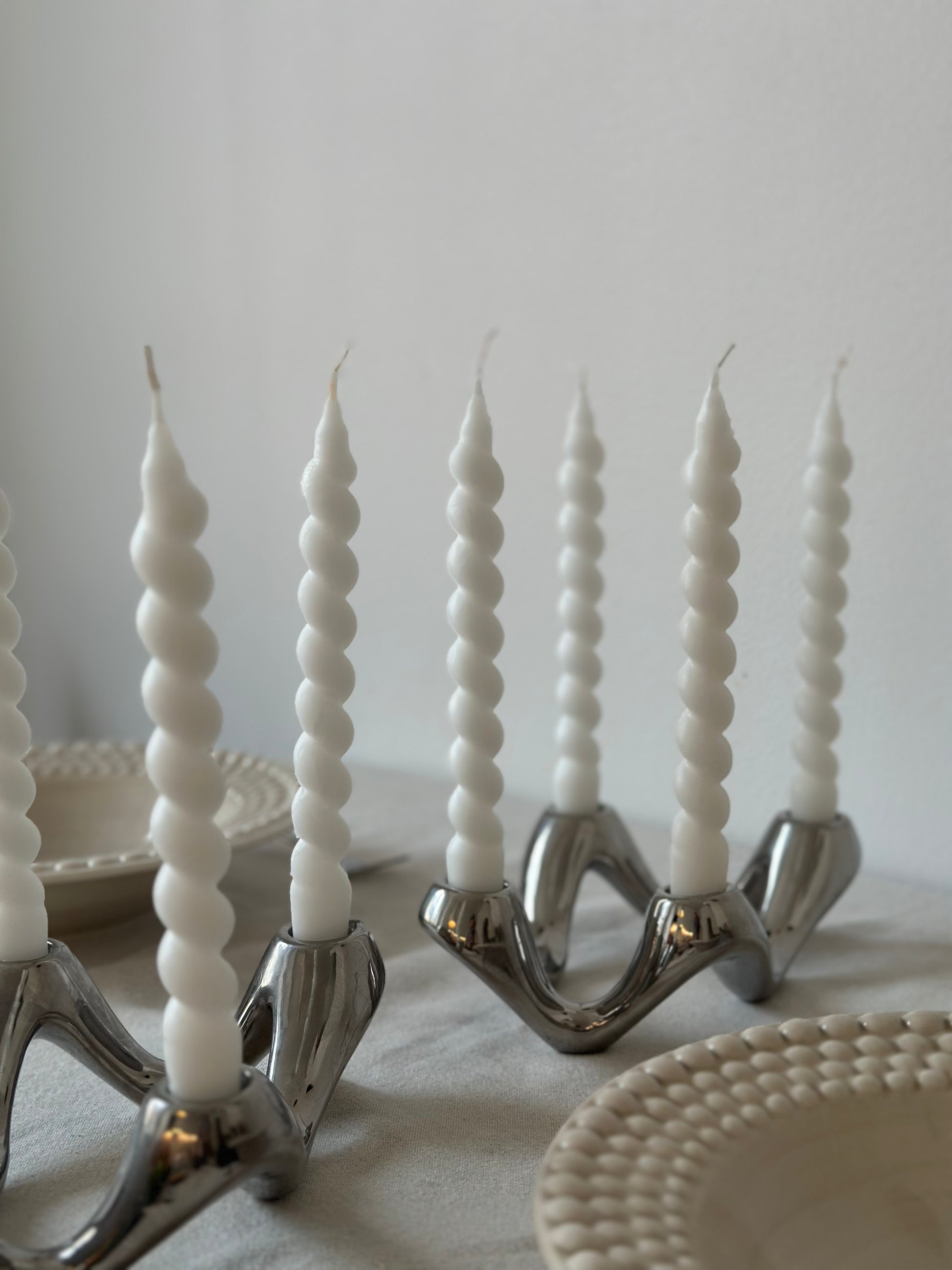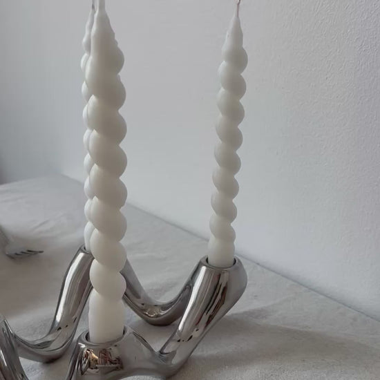 Handgjorda spiralformade ljus i 100% stearin ca 21cm långa och 2,2cm breda. Ser ut som härliga godissnören och är den perfekta dekorationen som piggar upp din dukning!