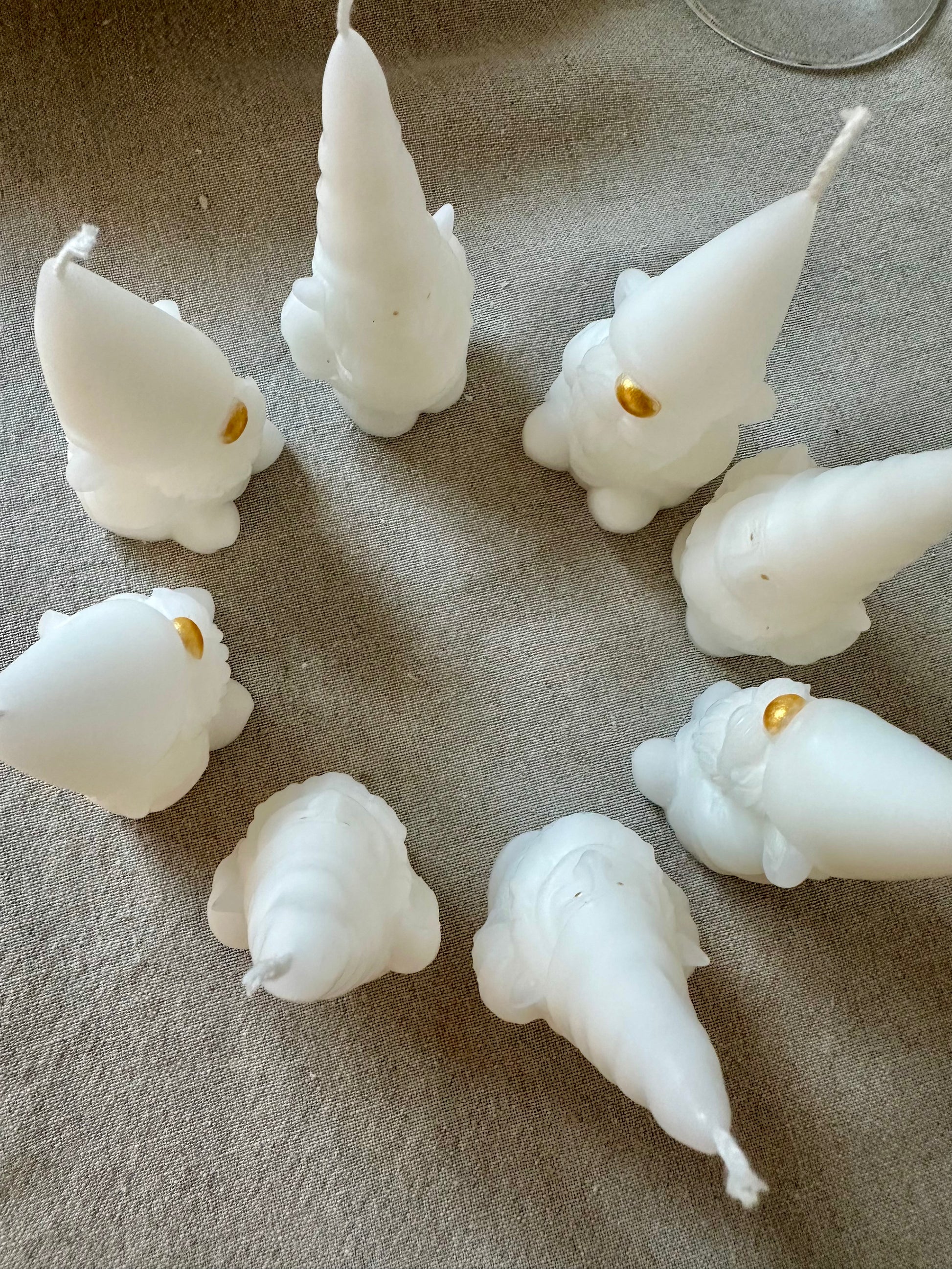 Vasastans nissarna är toppsäljaren i julljusen som innehåller 2st nissar ifrån Vasastan handgjorda i stearin i härlig pepparkaksbrun eller vit. Ca 8,5 cm höga.